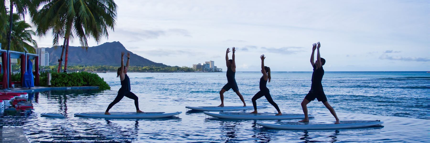 ワイキキビーチ前唯一のインフィニティプール上で行う、パドルボードヨガ体験。安定したアンカーボードを使用し、最大8名様までの少人数制で、心身のバランスを整えます。各60分間、朝または夜のクラスからお選びいただけます。ご参加の際にはヨガパンツとシャツ、もしくは水着でお越しください。シェラトン・ワイキキ・ビーチリゾートにご宿泊のお客様対象。ご希望の3週間前からオンライン予約が可能です。